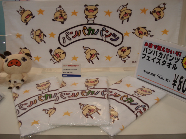 会場ではイベント限定のフェイスタオルも800円で販売中でした。一般公開日、パンパカパンツ好きな一家は、アオシマ・ブースを覗くといいことがあるかもしれませんよ。